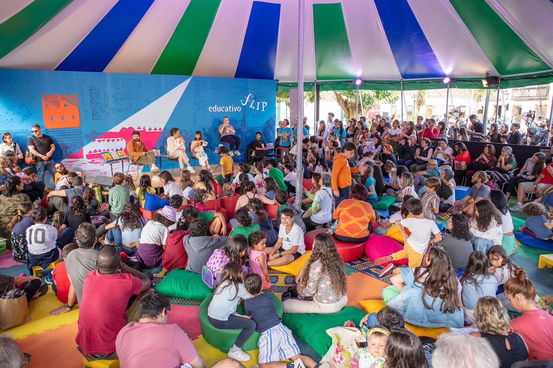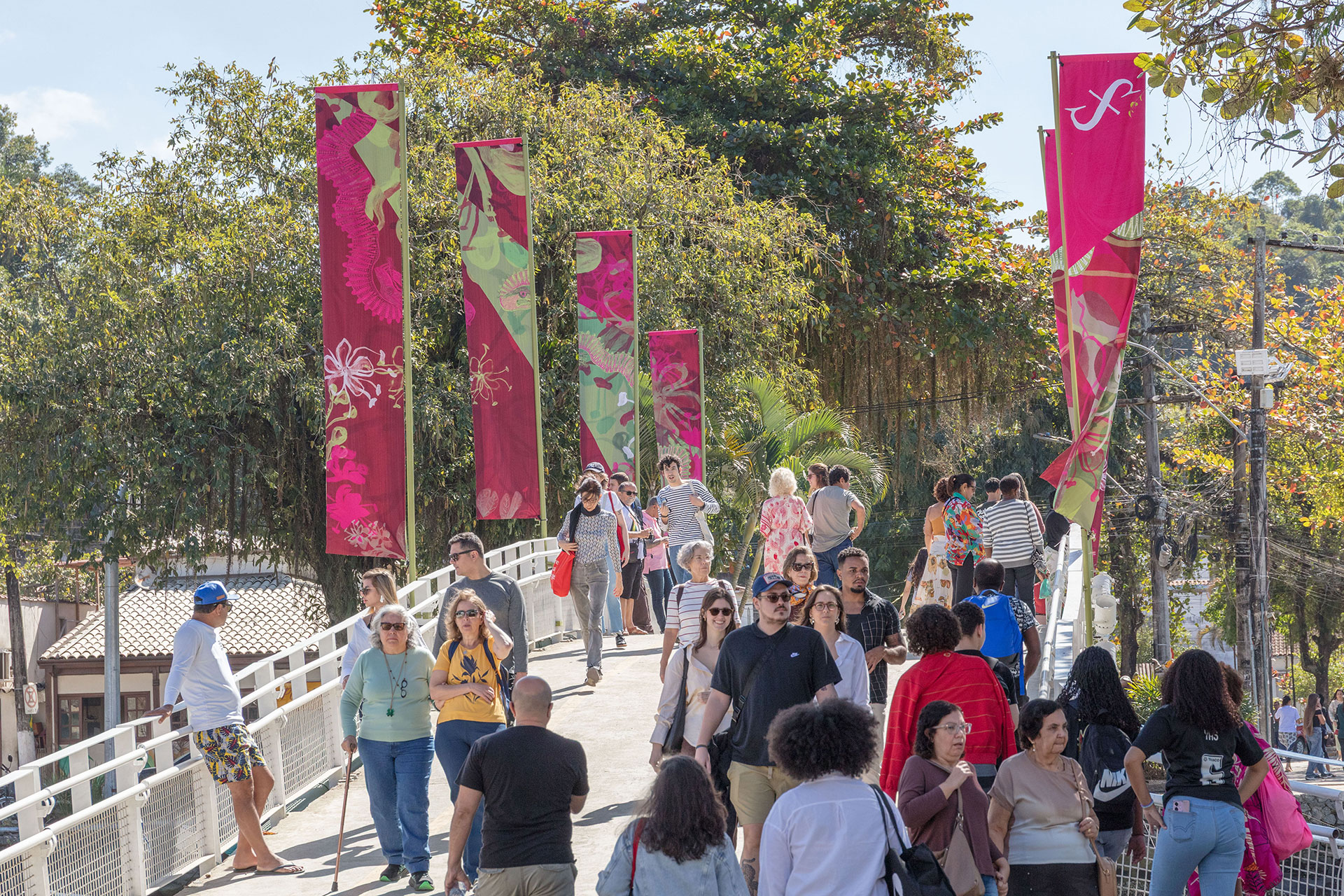 A programação é também transmitida ao vivo, de forma gratuita, pelo site da Flip, pelo nosso canal YouTube e pelo canal de TV Arte1, levando as mesas literárias a públicos de todo o país. Além disso, a ocupação do território durante a Festa é feita com responsabilidade e cuidado: em 2025, bancos doados e instalados ao longo da margem do rio Perequê-açu passaram a integrar permanentemente a paisagem urbana de Paraty.